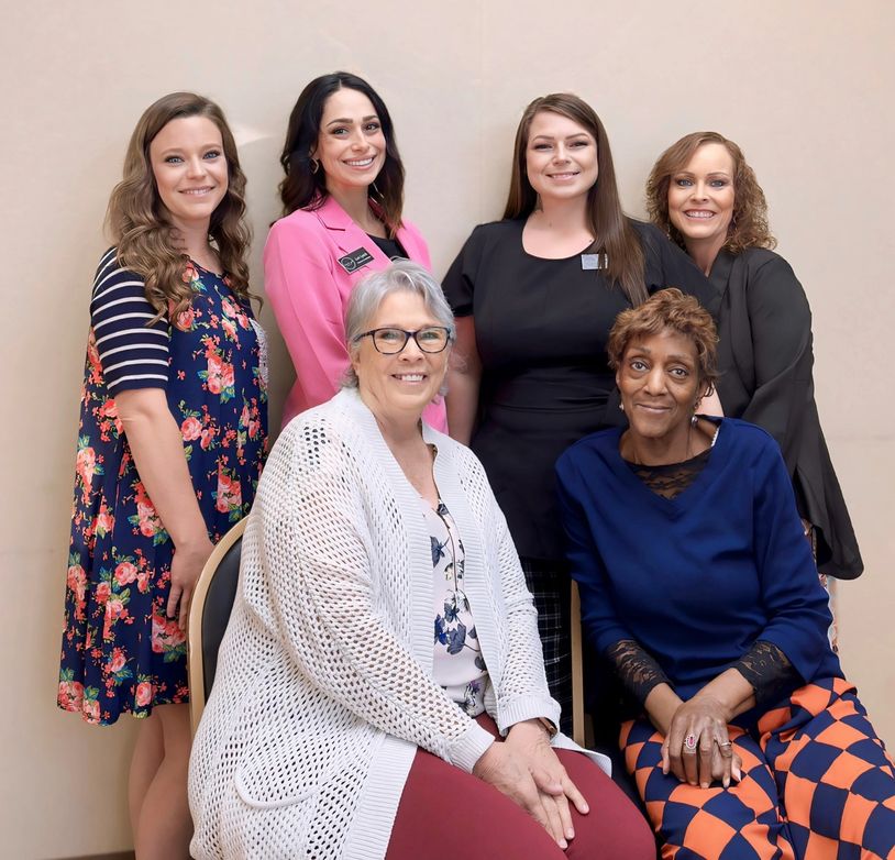 Office Staff: Bre, Front Desk; Lori, Outreach Coordinator; Amber, Executive Director; Angel, Assistant Director; Paulette, Client Facilitator; Beverly, Food Bank Distribution & Prayer