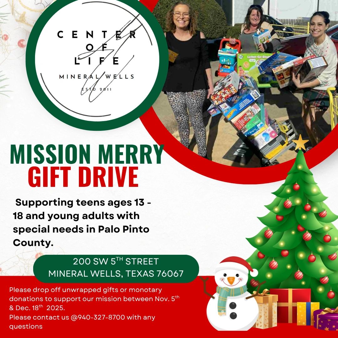 Mission Merry will be providing gifts for children ages 13-18 as well as young adults with special needs.